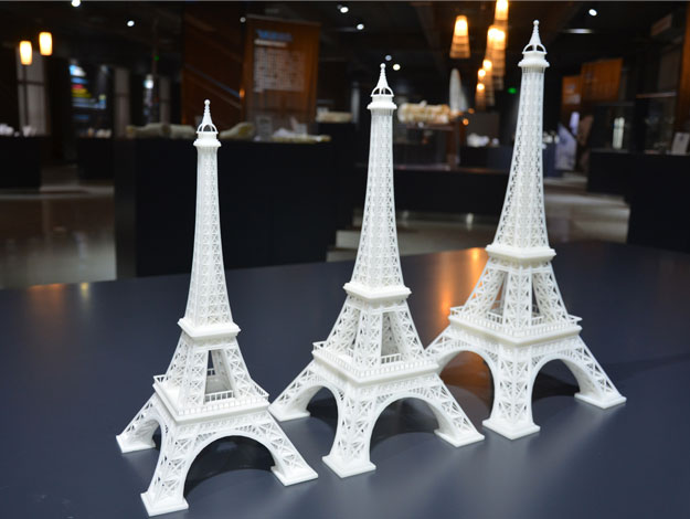 该建筑模型为“埃菲尔铁塔”等比例缩小模型,采用3D打印技术制造,在短时间内便完成制作,节省了制造时间和费用,每一根钢构在模型中均表现得如此逼真,更突出展现了“SLS激光粉末烧结”技术的精度优势。