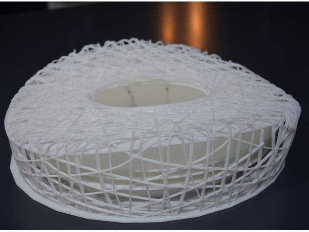 该建筑模型为“鸟巢”体育场等比例缩小模型,采用3D打印技术制造,在短时间内便完成制作,节省了制造时间和费用,每一根钢构在模型中均表现得如此逼真,更突出展现了“SLS激光粉末烧结”技术的精度优势。