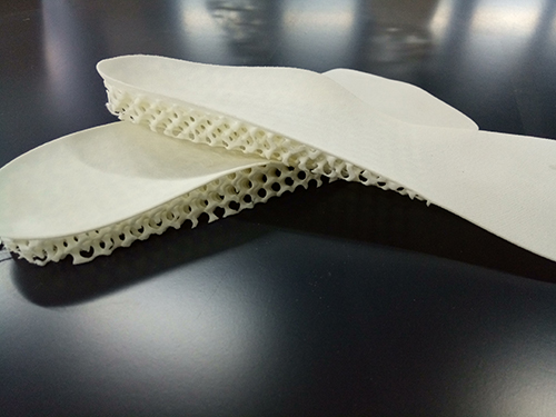 3D打印制鞋技术使用3维扫描仪对穿着者的足部进行全方位扫描,并使用采集到的数据来设计3D打印鞋的中底。然后,采用一种高分子耐磨材料”TPU”打印出蜂窝结构的中底。