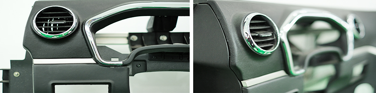 在仪表盘上的空调风道出风口格栅主要是用于微调风向,由很多零件组成,结构复杂,在没有模具的情况下,前期开发困难很大,几乎无法实现。但华港科技的3D打印应用解决方案能够一次性整体打印并实现。