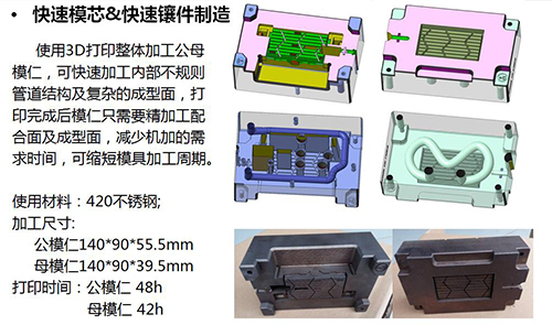 4、按照3D打印行业目前的成型效率与设备尺寸,还无法满足大型模具的整体打印需求;但对于小型定制化、小批量模具及“模芯”等关键部件的快速制造具有优势。