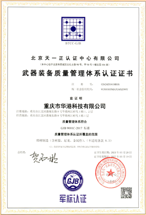 国军标体系认证证书