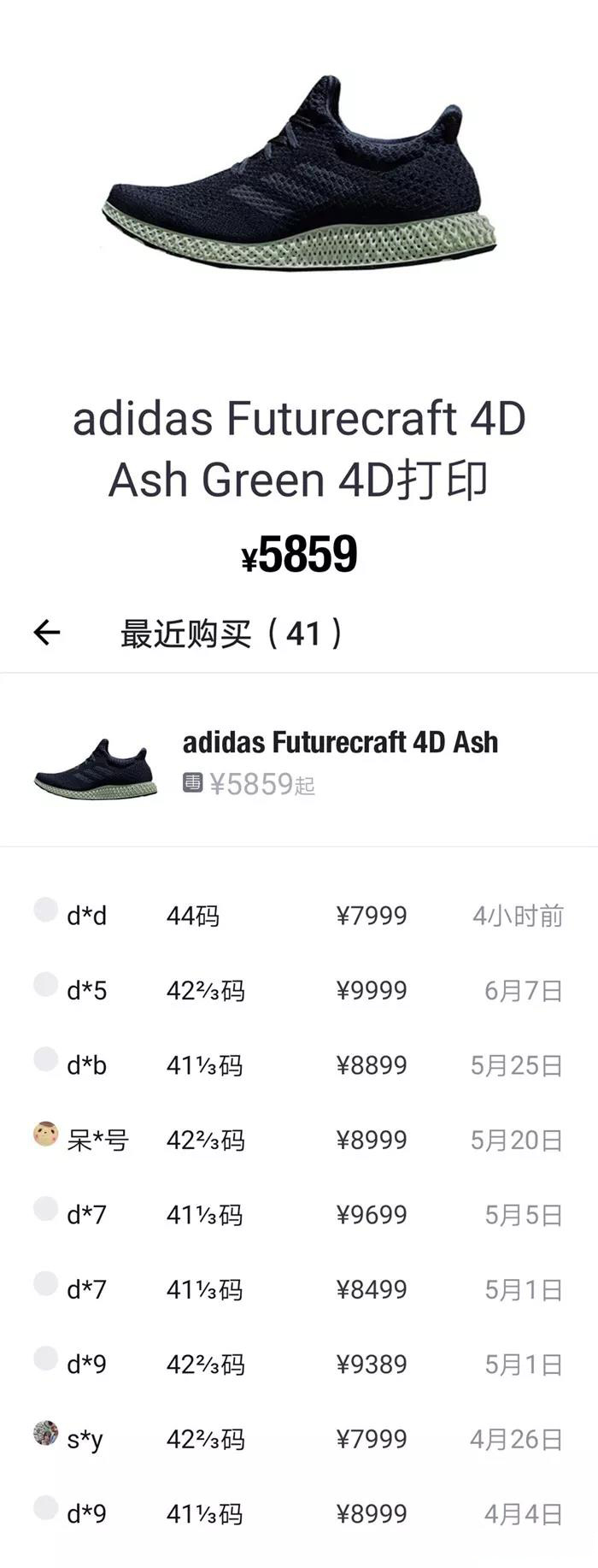 Adidas Futurecraft 4D Ash Green 版本,被00后们炒至最高9999元。
