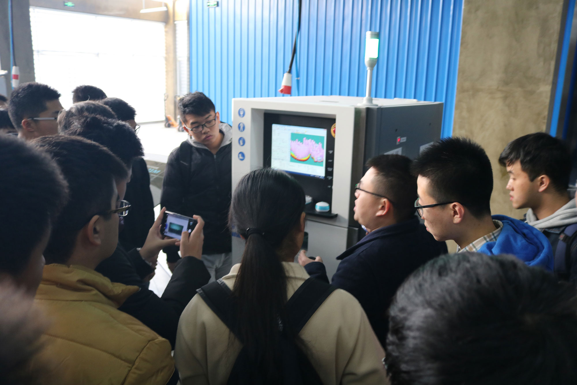 当日,在一楼展厅,华港科技常务副总经理罗涛为师生们讲解了公司经营情况及3D技术在汽车研发等领域的应用,并带领大家观摩了正在运行的华曙高科激光粉末烧结3D打印机;二楼展厅里,同学们置身于“工业级3D打印”的神奇世界里,尽情感受华港3D打印技术在工业制造、航空航天、军工、模具、医疗及文化艺术领域的应用,面对尼龙、金属类3D打印原材料、定制化鞋垫、一体化成型的回力车,大家对3D打印技术的运用优势有了更为直观的了解。